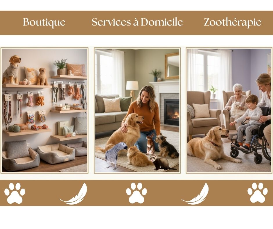 Boutique en ligne, services à domicile et zoothérapie avec passion