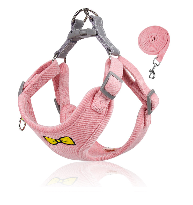 Dog Leash Embroidered Vest Puppy Strap Corduroy Pet Chest Strap Dog Leash