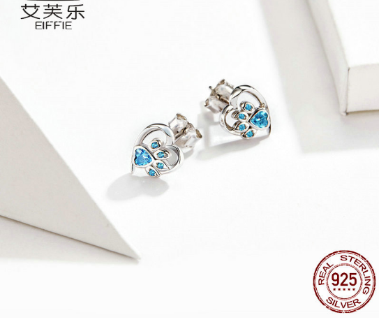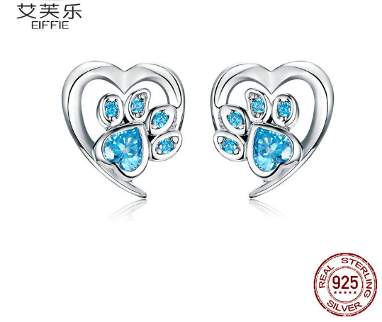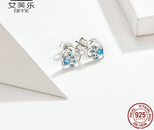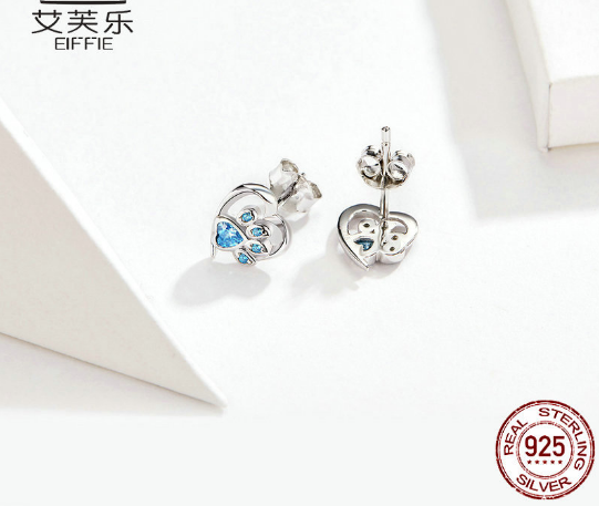 Girls Jewelry Sterling Silver Cat Claw Stud Earrings Blue Heart Fashion Simple Earrings