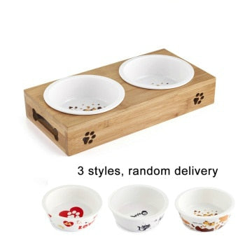 Gamelles avec cadre en bambou avec 2 choix de bols, acier inoxydable et céramique pour chiens, chats et petits mammifères.