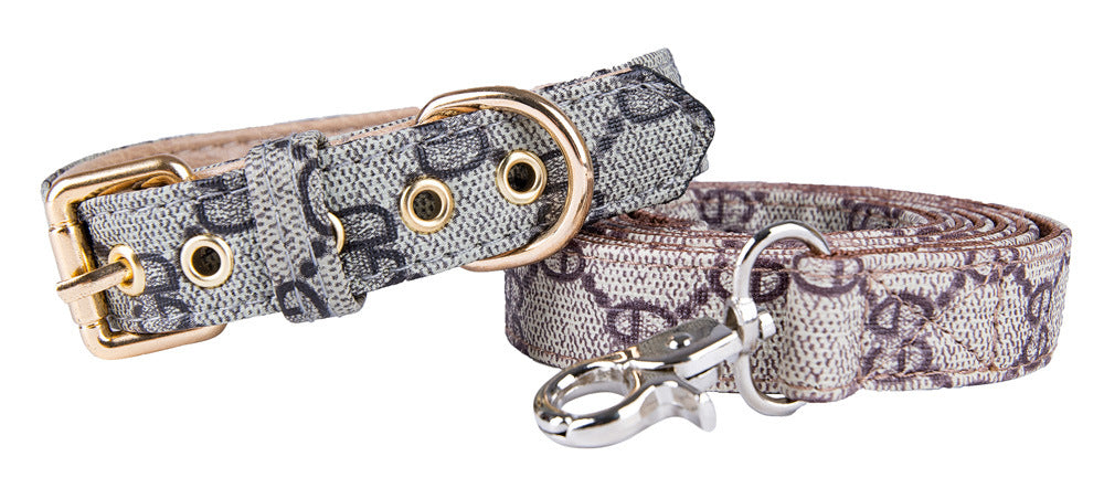 Old Flower Pet Collar PU Leather Dog Collar Traction Rope Cat Traction Collar Dog Walking Rope Anti-String Wear