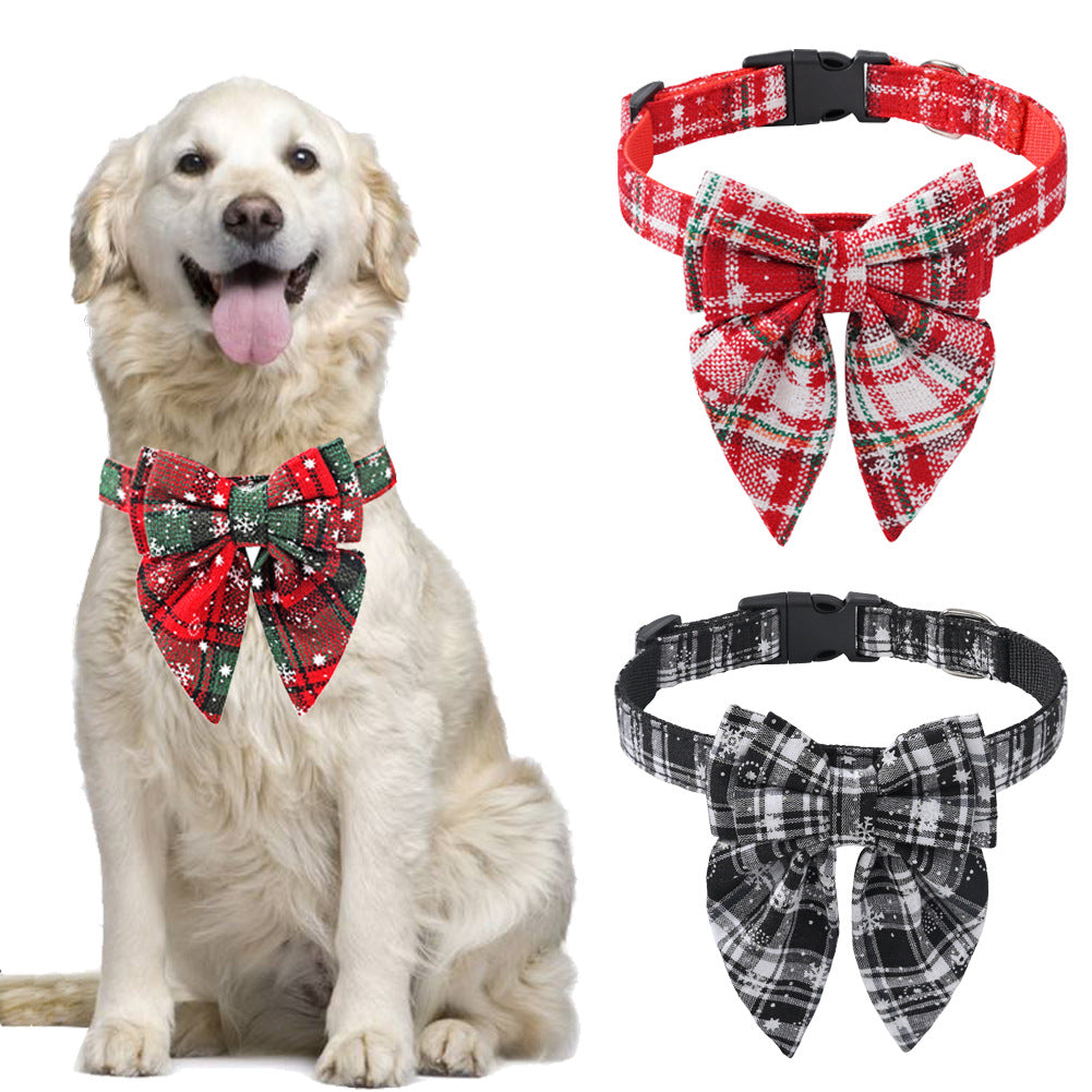 Pet Cat And Dog Collar Christmas Snowflake Red Bow Collar Small Medium And Large Dog Collar