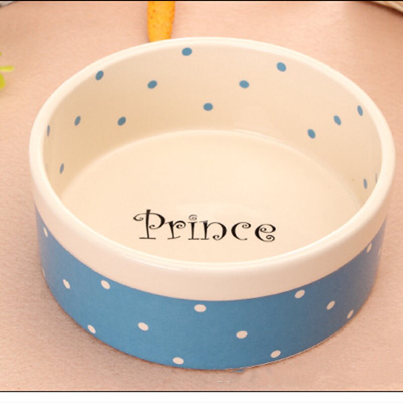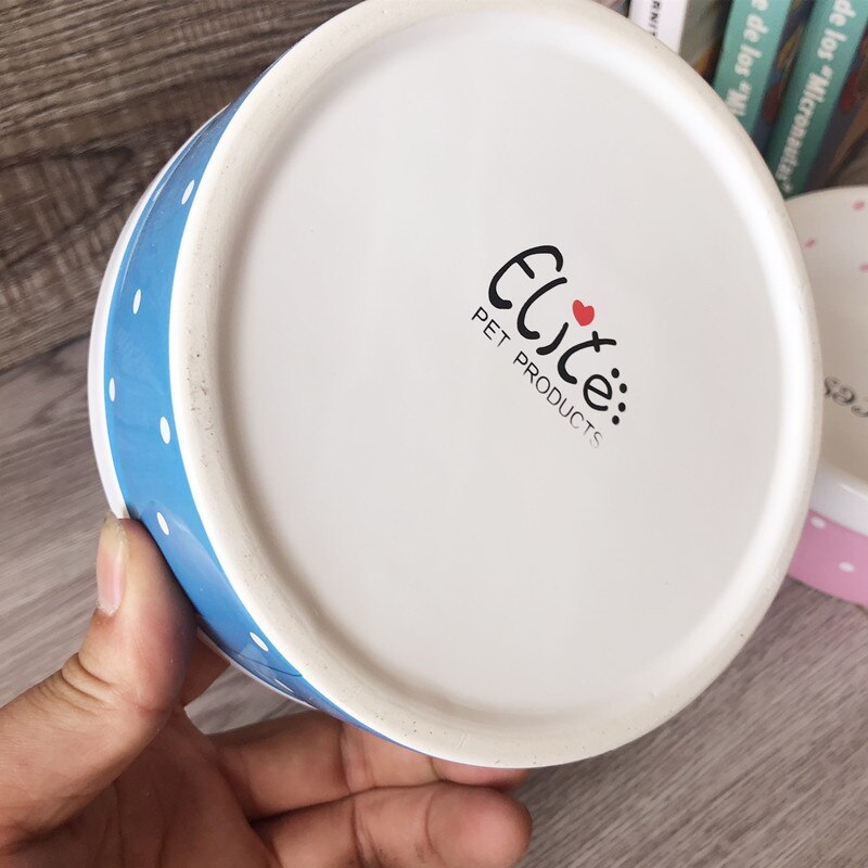 Pet Dog Beautiful Ceramics Pink Blue Dot Pattern Bowl Dog Cat Drinking Eating FeederS BW761