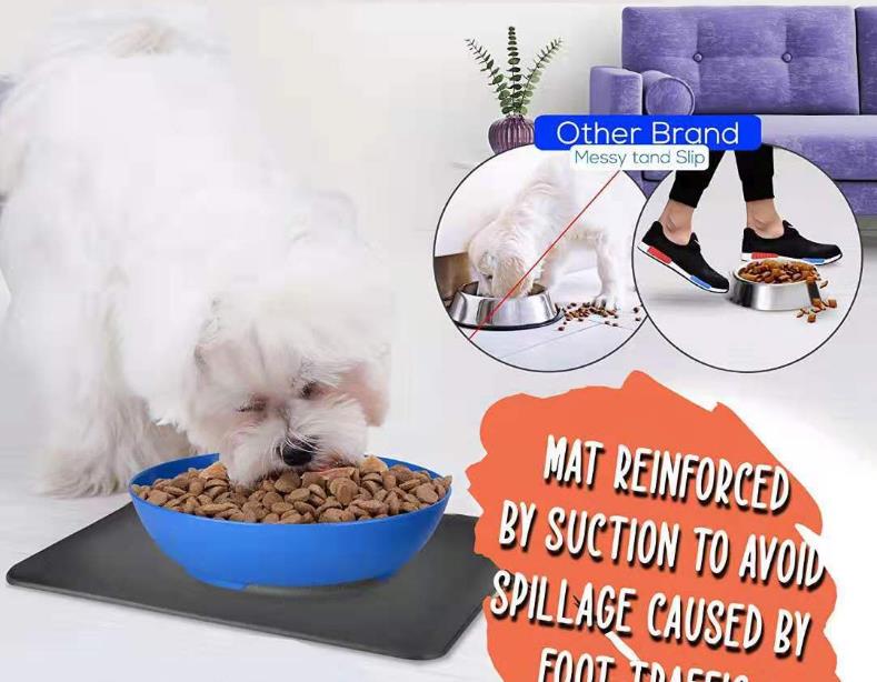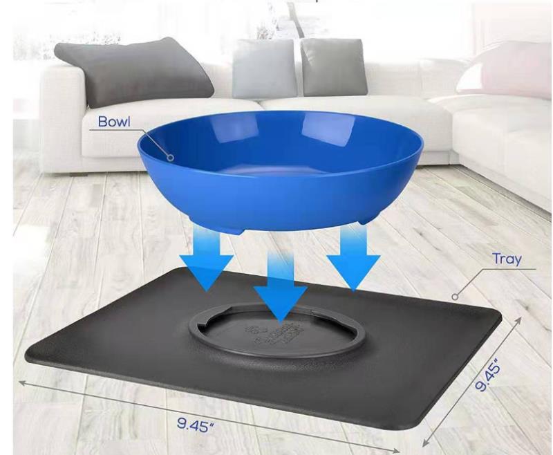 Silicone table will be fixed to your floor to prevent bowls from tipping over, food moving and spills.